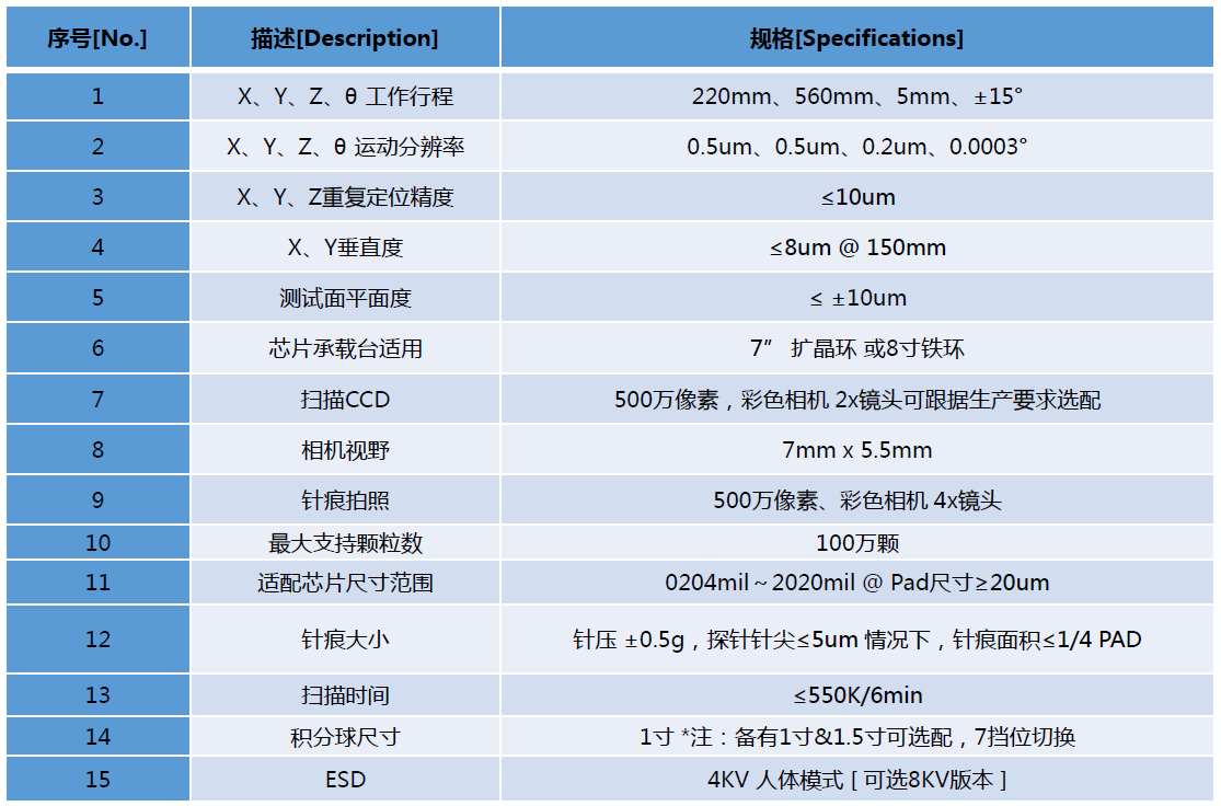 Prober&Tester整合一体机设计,具有业界领先的测试速度与精度;